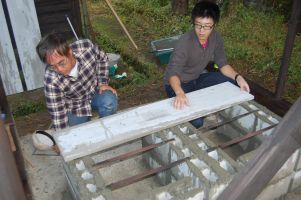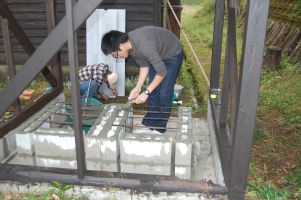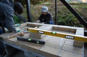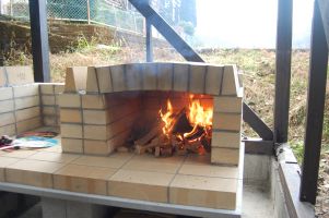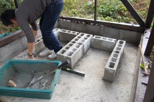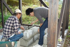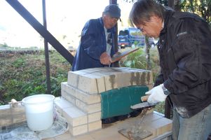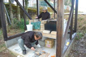 ![]() パン窯を載せる土台が完成。 |