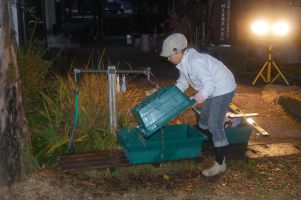 ![]() 暗くなったので投光器で照らしながらの片付けです。 |