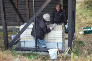![]() 2基目の窯の壁を積んでいきます。 |