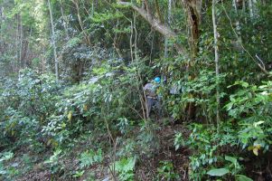 今回の伐採は尾根近くまで進みましたが、その先の谷も竹竹で、どこまでも竹がはびこっています。また、宮崎大学農学部の木准教授に来ていただき、竹林の植生の調査と今後の森づくり構想についてのアドバイスと意見交換をおこないました。