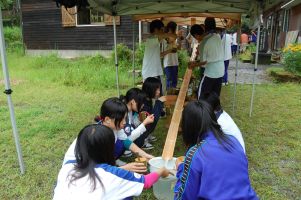 | そうめん流しで使用するおわんを竹で作り いざそうめん流しへ | |