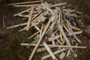 | 竹を粉砕機で粉砕できる長さと厚みにする | |