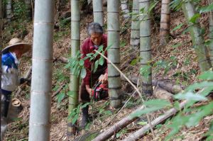 | 粉砕機で作る竹チップ | 竹整備の様子 |