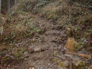 門川高校生新メンバーをまじえて作業道階段作りを実施しました。新たな作業道のルートも決め、新作業道の入り口を山斜面にある石で積みました。12時になったところで、カレーでお昼をとり解散となり、高校生ボランティアは、高校部活動へと向いました。