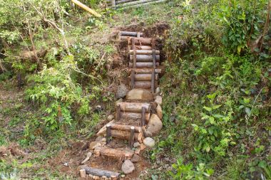 | 梅雨の合間の竹林整備 | 妖精の森の作業階段 |