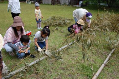 | 4mの竹以外は粉砕します | 子どもたちには初めてのノコギリです |