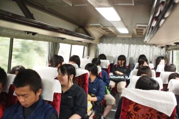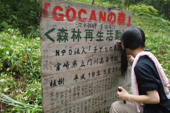 門川高校に8時集合して、参加する高校生全員が揃ったところで、24人乗りバスにでGOCANの森に出発しました。バスの中で横山理事長が、今日の作業の意義と注意事項、これまでの7年間のGOCANの森の活動についてを説明しました。