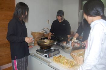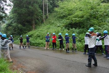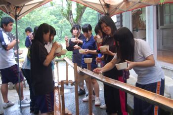 今回は、ピザ焼きと流し素麺、かき揚げです。それぞれの作業に分かれてもらって昼食の準備を行いました。他に、使用した造林鎌の手入れやヘルメットの後かたずけも高校生で行いました。