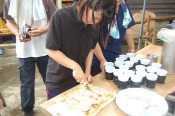 | 今日の昼食は屋外 | 直径8cmでカット |