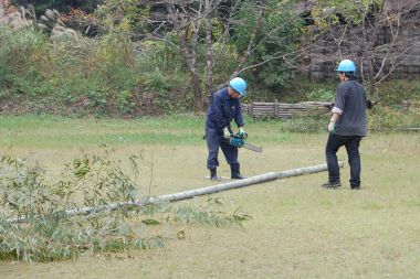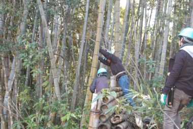 | 今日の参加者 | まっすぐ竹が生えていないので人力で倒す方向を調整 |