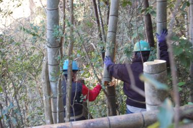 次年度のecoスクールでの竹イカダ用竹の伐採と、次に作る竹棚の準備をしました。