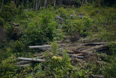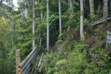 | 倒竹を集積 | 竹林の整備している所からの眺め |