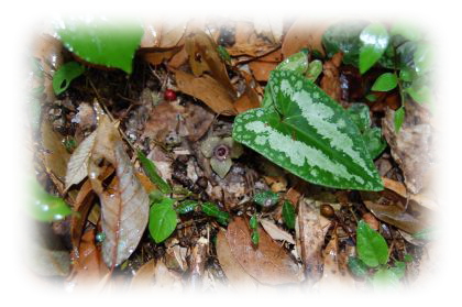 葉は卵心形で基部は深い心形、長い柄があり表面には白い斑が入るものが多い。