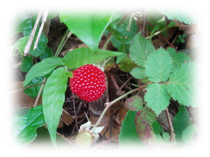 9月〜10月には球状の果実が赤く熟し、薄甘くて食べられる。