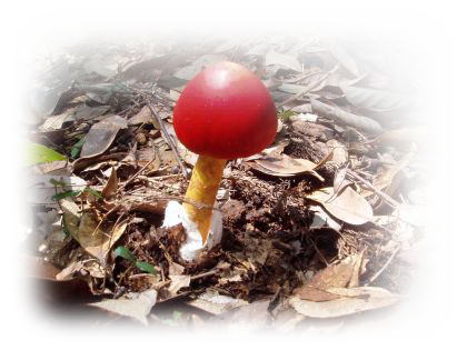 卵のような形の幼菌が割れて、大きな赤い傘を立ち上げるきのこ。