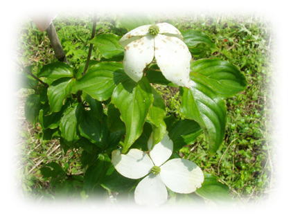 山野の林内に生え、5月〜7月に白色から淡紅色の大きな花を木いっぱいに咲かせる。花びらに見えるのは総苞片で、本当の花は中央にある丸い部分。