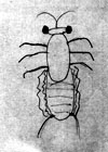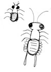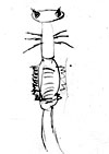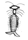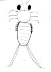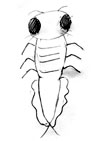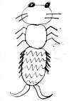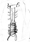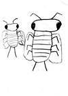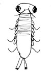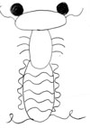お腹は胴よりもっと縦に長い楕円形で横向きに縞模様がついていて、スカートのひだのようなものが左右6個づつ重なりあってついている。