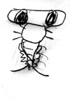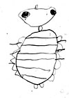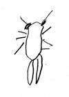 黒木さんが言葉で、川の中に生息しているある虫の説明をします。最後まで説明を聞いて、イメージした虫を参加者各自が書きます。色々なミステリーアニマル(イメージした虫)の絵できあがりました。