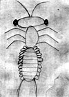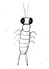 頭が横に楕円形で両端に大きな目がついている。頭には、2本ひげがある。