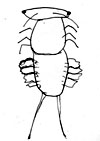 胴は縦の楕円形で左右に3本づつ足がついている。