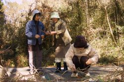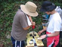 フェニックス宮崎ネイチャーゲームの会から、古田さんと長友さんに来ていただき、デイキャンプで予定しているネイチャーゲームの打ち合わせをしました。フィールドの状況をチェックして、どのゲームが向いているか検討してもらいました。