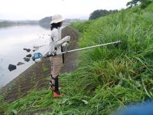 6月24日に、バードウオッチングをする五十鈴川河口の草刈りをしました。今回、初めて草刈機を使用する会員は、草刈りの練習をしてから、いざ実践。草刈りの途中で、釣り糸が草刈機の刃に絡まり、草が刃から離れず中断することがありました。一部の心無い釣り人が釣り糸を捨てていると思われます。釣り糸や釣り針による野鳥への被害があることを考えて欲しいものです。