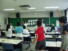 《ドングリ・クイズ》 午後のスタートも音いくつから入りました。午後は、朝とちがう音が聞こえてくるはず・・・・。心が落ち着いたところで、ドングリの不思議をクイズ形式で学習していきました。このクイズで、ドングリを土に埋めて、芽を出させるための知識を覚えていきました。![]() |