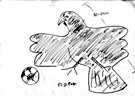 猪崎先生が言葉で鳥の説明をします。最後まで説明を聞いて、イメージした鳥を参加者各自がスケッチします。色々な鳥のスケッチができあがりました。まさに、ミステリー。