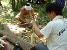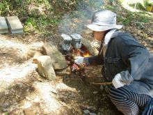 ![]() 釜戸で飯盒炊飯(煙がすごかった) |