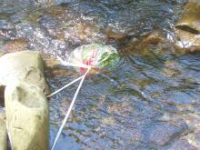 ![]() 川でスイカを冷やしました |