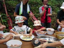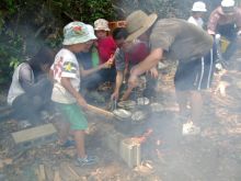 ![]() 石の釜戸で飯盒炊飯 |