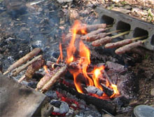 直火でソーセージを焼きます |