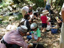 川虫を探しています。川虫もネイチャーゲームに取り入れることができます⇒