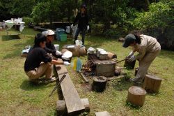 | 飯盒炊飯の準備 | 古田さん、黒木さん(ネイチャーゲーム)紹介 |