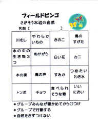 | 沢を歩きながら、ビンゴカードにあるものを探しました。 | |