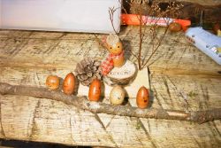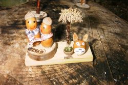 美味しい昼食が終ったら、ドングリ工作をはじめました。作品サンプルを見てもらい、参加者各自で自由に材料を選んで工作をしました。参加された皆さんは、一生懸命にドングリや枝の組合せを考えて、オリジナルあふれる作品を完成させました。