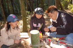 @環境プログラム(小学校での椎茸作り、昨年の環境問題を考える講演会、バードウオッチング、デイキャンプ、どんぐり拾い、つる取りとつる工作)