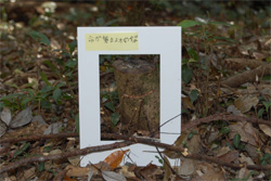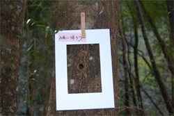 | 《森の美術館》 自然の中にいると、その中の風景や場所、動植物などが1枚の絵のように美しく輝いている場所に出会うことがあります。そこに額縁を置くだけでそこはギャラリーとなります。みんなで鑑賞し自然の美しさをわかちあいましょう。 |