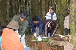 ![]() 竹を輪切りにしてお碗作り |