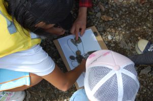 ジグソーストーンでは、河原の石を使って魚やエビ・カ二等を組み立てて行きます。普段は何も気にすることがない小さな石をマジマジと見る機会となり、自然界には決して同じ石が存在しないことを確認できました。
