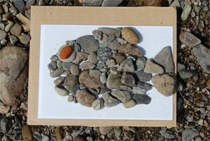 ![]() 小石を並べて組み立てます |