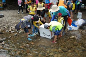 ![]() 宝物調べ(観察)が終ったら宝物は川に帰します |