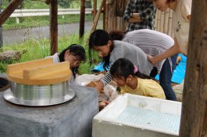 ・大変有意義な一日を過ごすことができました。子供との参加でしたが、水遊びが苦手だったのに、楽しいことに気がつきました。また生き物に触れ合うことで新しい発見ができて良かったです。器を作っての素麺流しも美味しく頂きました。たくさんのスタッフの方々のサポートありがとうございました。また参加できたらと思います。