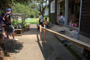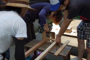 | 素麺流しの竹レールとレールを支える足作り | |
