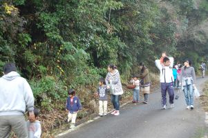 日向市で活動しているKenpoku・Pamaki(パパ・ママ・キッズの集まりかな?)から、8人のメンバーが森の学舎にやって来ました。ネイチャーゲーム、ゴミ拾いとゴミクイズ、なんでもマイレージの環境を考える活動をお手伝いしました。