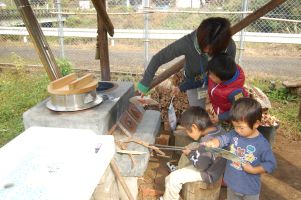 ![]() 釜戸炊飯も子供たちが手伝いに来てくれました。 |