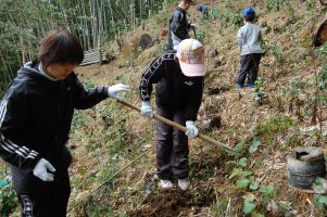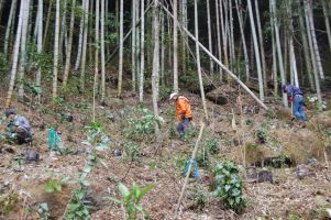 | 竹の伐採跡である「妖精の森」にツブラジイを10本捕植しました。 | |