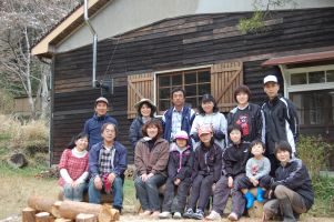 | シイタケ菌コマ打ち作業 | 参加者記念撮影 |