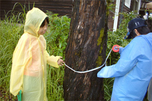 ![]() 測ったデータから樹木の二酸化炭素吸収量を計算します |