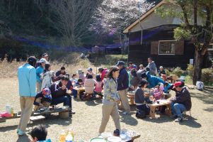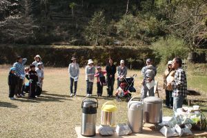 | 一般参加者とボーイスカウトは竹伐採跡地 | ||
